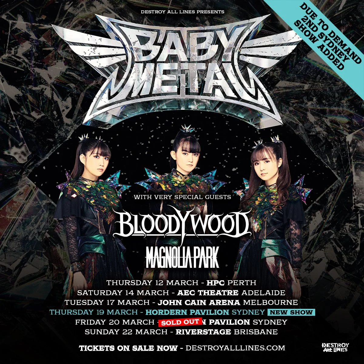 A dazzling global force to be reckoned with, in 2026 Metal sensations BABYMETAL are set to tour Australian arenas next March joined by Indian metal behemoths BLOODYWOOD.
